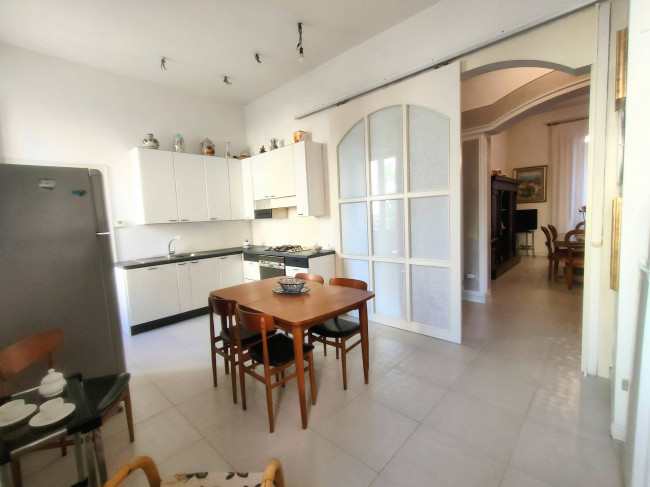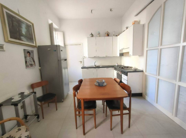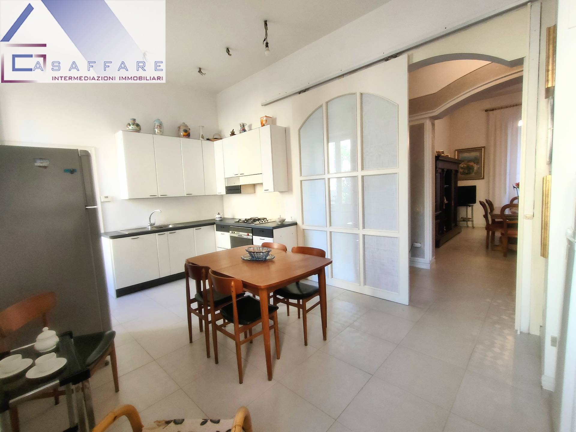 Un'elegante porta a tutta altezza ,scorrevole e con vetrata ,divide la cucina dalla sala .